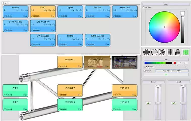 Don’t be deceived by its apparent simplicity; LED-UP is a powerhouse of features. With the ability to program and configure standalone devices, it offers simple-to-use control solutions for a variety of projects. LED-UP provides a wide range of lighting management choices. These include the Editor mode for scene programming, Effect-generator for Colors and Pan/Tilt movement, Graphical DMX addressing, Profile Editor, Advanced Matrix Editor, and more.